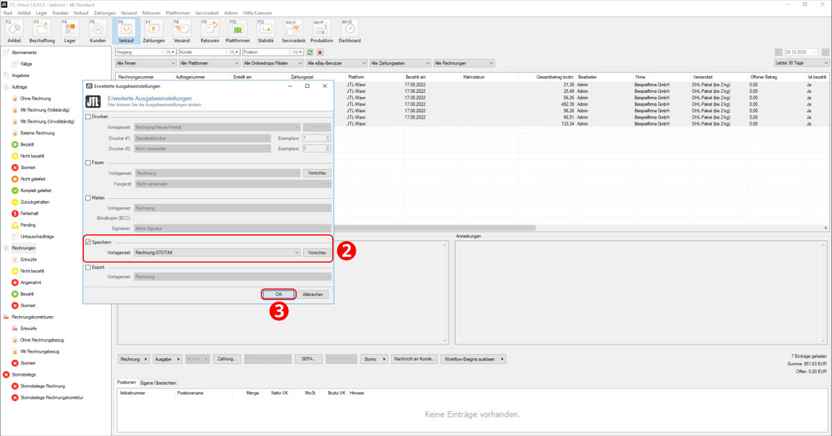 Sie befinden sich hier: Wiki für die Fibu-Schnittstellen der Jera GmbH » jtlstotax » setup » Belegupload in der JTL-WaWi für JTL 2 Stotax : stotax19.jpg