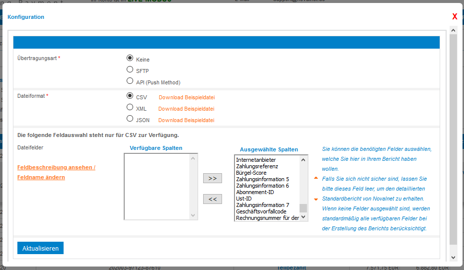 Sie befinden sich hier: start » novalnet » pass_sheets : novalnetconfigexport.png