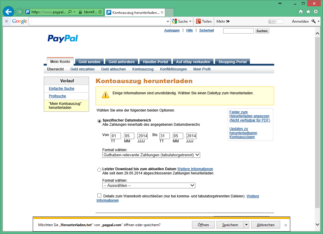 Sie befinden sich hier: Wiki für die Fibu-Schnittstellen der Jera GmbH » paypal » PayPal Kontoauszug im älteren Design-Varianten : pass_sheets_download2.png