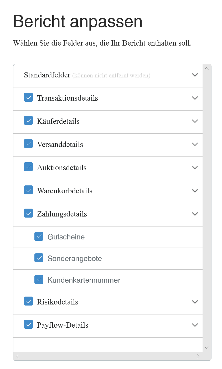Sie befinden sich hier: Wiki für die Fibu-Schnittstellen der Jera GmbH » paypay2meso » paypal » Import Paypal Kontoauszug : design2-manegefieldspaymentsdetails.png