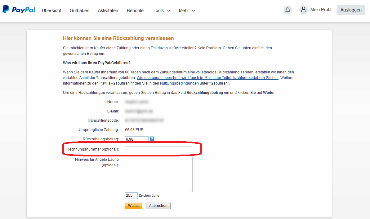 Sie befinden sich hier: Wiki für die Fibu-Schnittstellen der Jera GmbH » pdfdoku » BillBee 2 DATEV Dokumentation » BillBee 2 DATEV Dokumentation : paypalrueckzahlungen.png