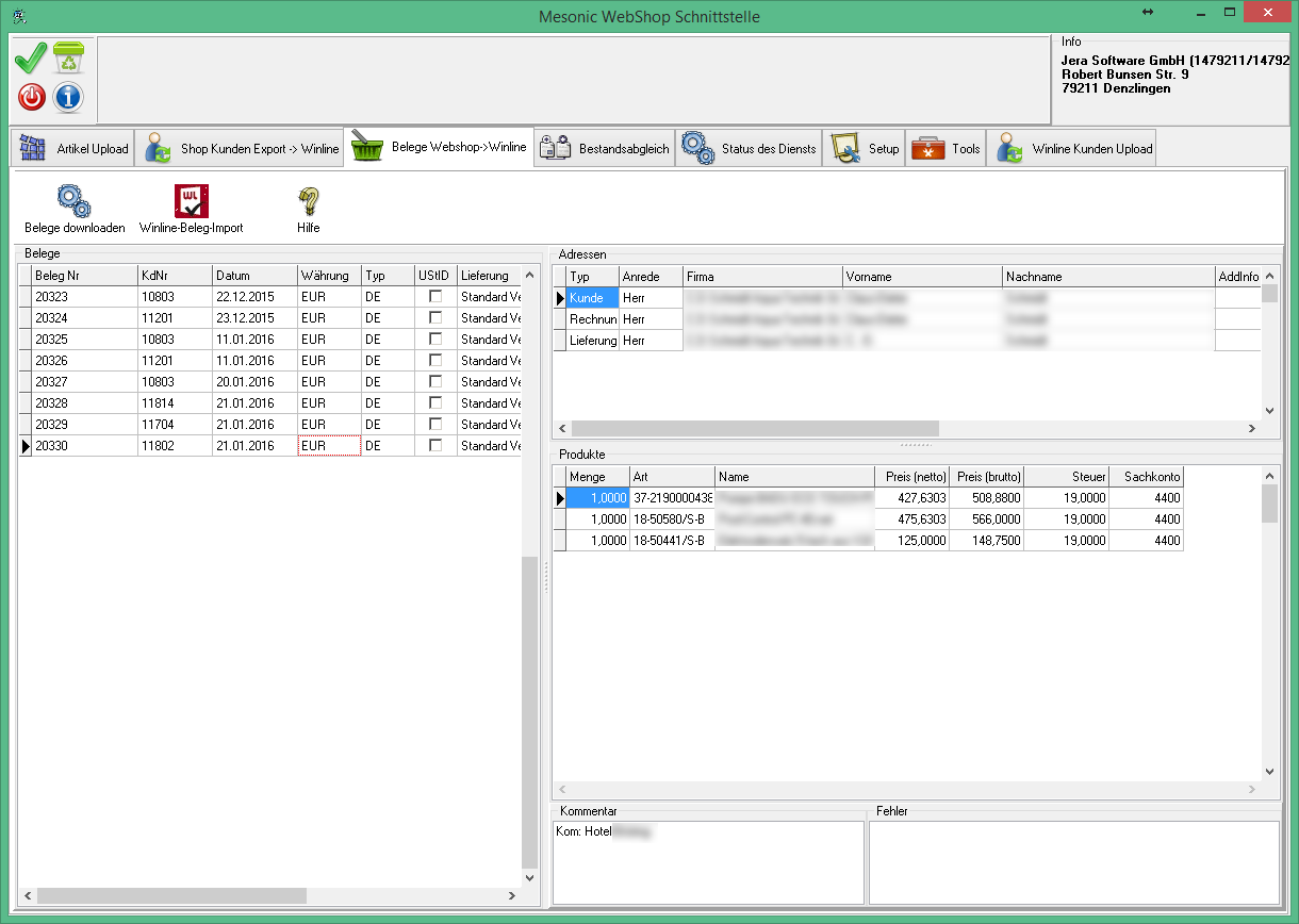 Sie befinden sich hier: Wiki für die Fibu-Schnittstellen der Jera GmbH » shopware2meso » Beleg Export : belegexport2.png