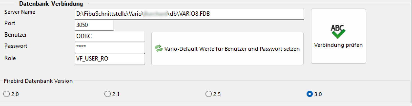 Sie befinden sich hier: Wiki für die Fibu-Schnittstellen der Jera GmbH » Vario2DATEV » setup » Vario Einstellungen : dbconnection.png