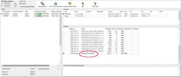 Diese Rückstellung wird beim Export der Einkaufsrechnungen wieder aufgelöst.