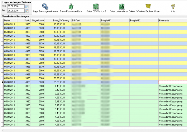 Um die Buchungen besser unterscheiden zu können, sind diese farblich hinterlegt.