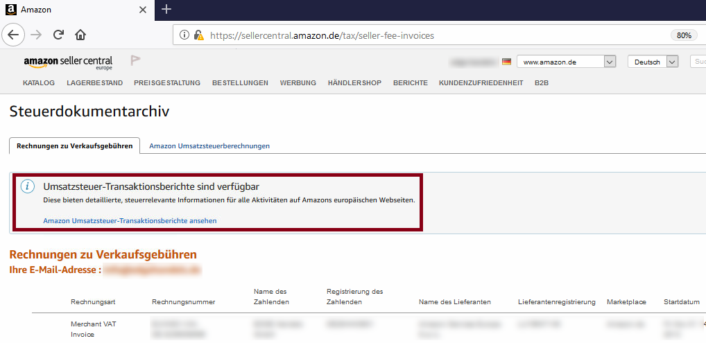 Sie befinden sich hier: Wiki für die Fibu-Schnittstellen der Jera GmbH » DATEV » BillBee » report » Report für die Amazon Verbringungen : taxreport1.png