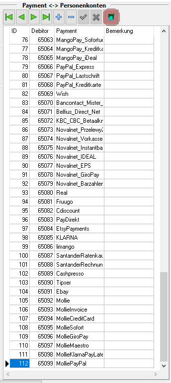 Sie befinden sich hier: Wiki für die Fibu-Schnittstellen der Jera GmbH » DATEV » BillBee » Billbee-Einstellungen » Personenkonten : billbeepaymentdebitoren.png