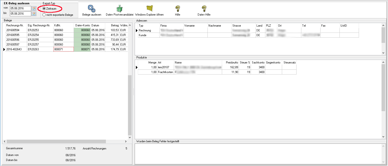Sie befinden sich hier: Wiki für die Fibu-Schnittstellen der Jera GmbH » Belege in die Schnittstelle einlesen » JTL Einkaufs- Belege einlesen : ekexpo1.png