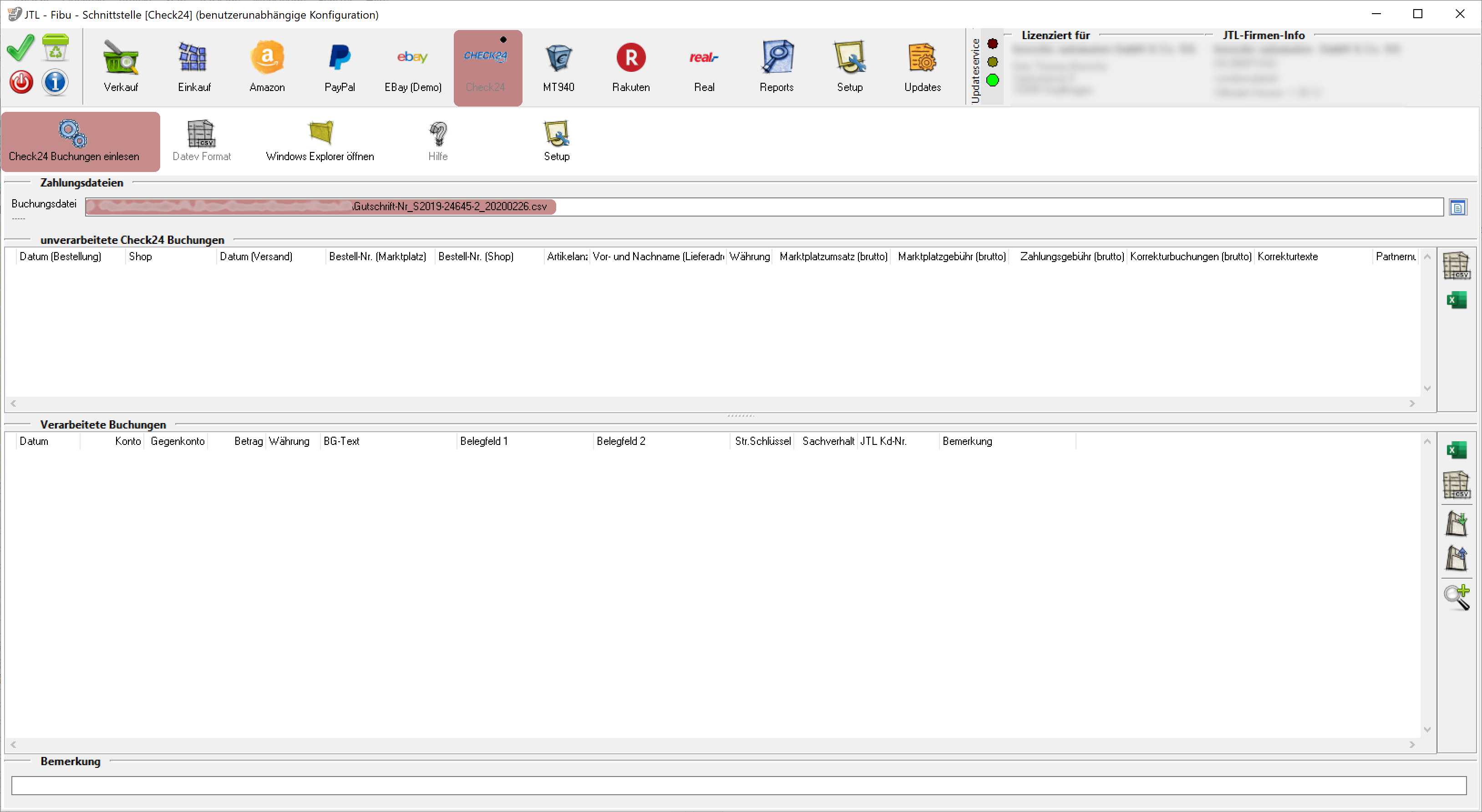 Sie befinden sich hier: Wiki für die Fibu-Schnittstellen der Jera GmbH » Belege in die Schnittstelle einlesen » check24 » Check24 - Import des Kontoauszugs : check24process1unvisible.png