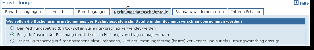 Sie befinden sich hier: Wiki für die Fibu-Schnittstellen der Jera GmbH » Belege in die Schnittstelle einlesen » DATEV » Wichtige Hinweise » Einstellungen : rechnungsdatenschnittstelle.png