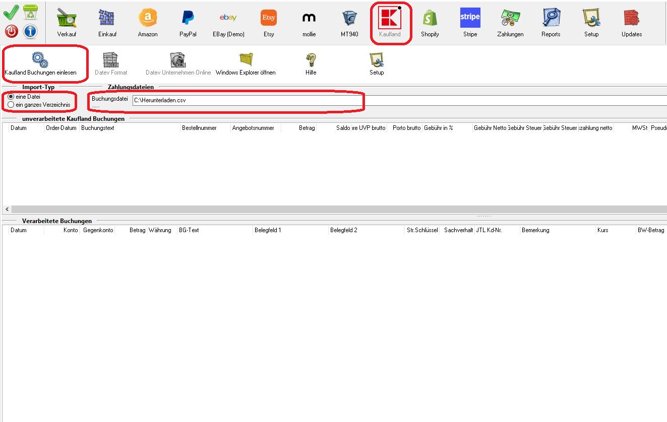 Sie befinden sich hier: Wiki für die Fibu-Schnittstellen der Jera GmbH » Belege in die Schnittstelle einlesen » real » Kaufland.de Buchungsreport erstellen : kaufland_07.jpg