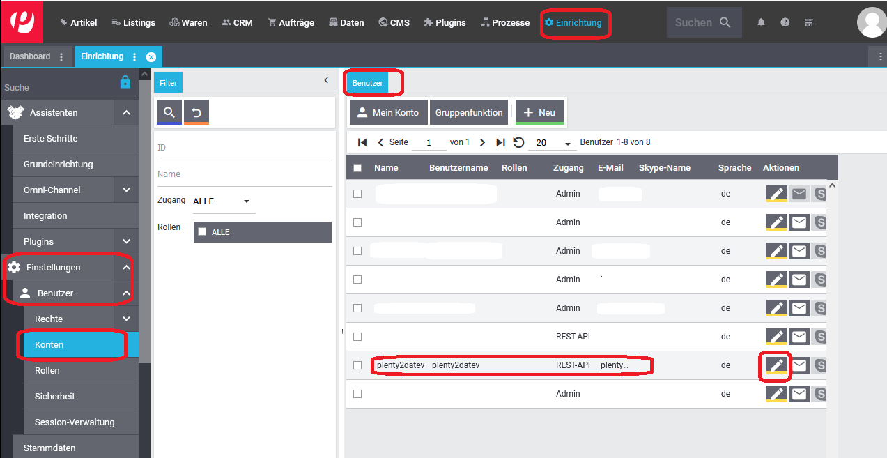 Sie befinden sich hier: Wiki für die Fibu-Schnittstellen der Jera GmbH » PlentyMarkets » Anlage eines Rest-API Benutzers in Plentymarkets : rest-api-nutzer_4.png