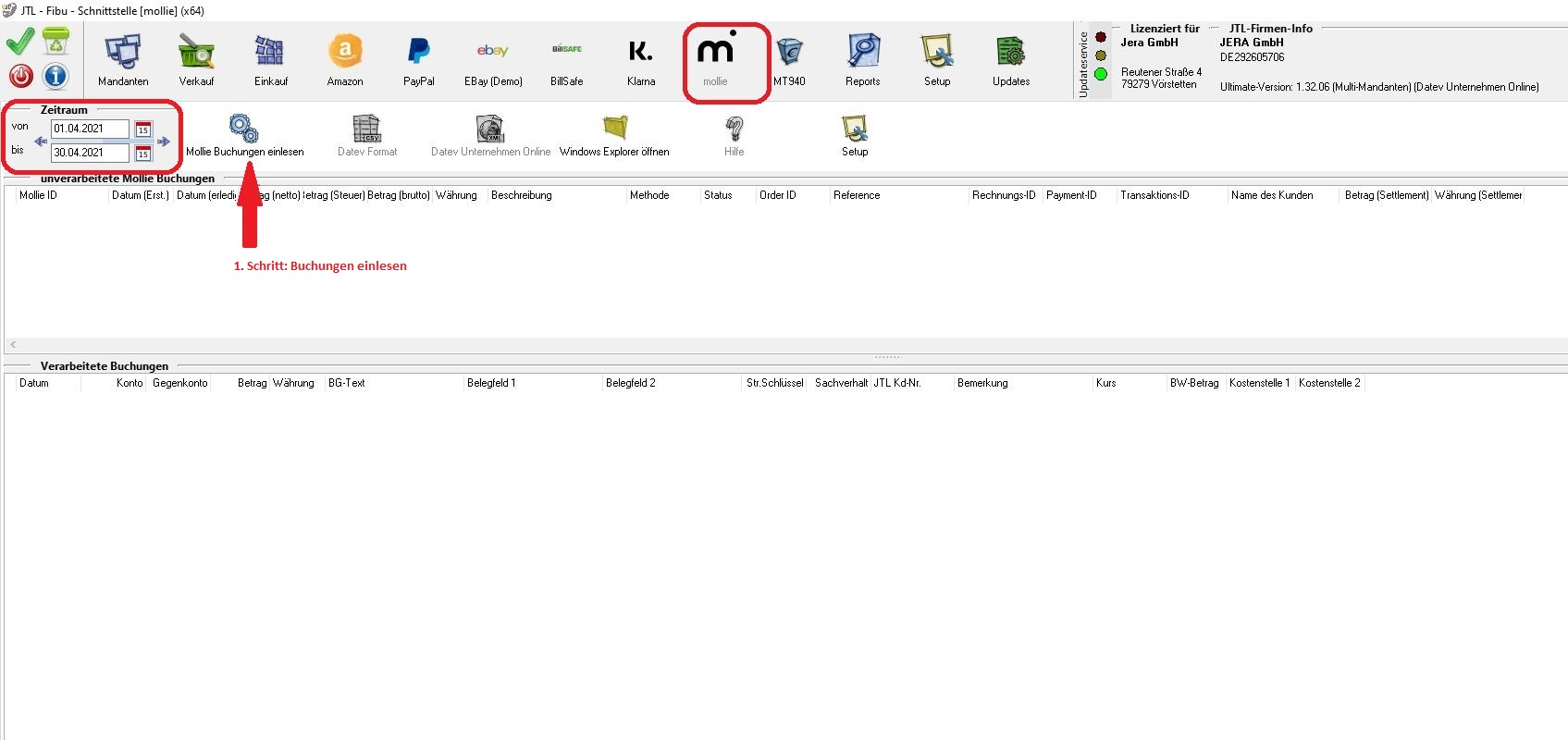 Sie befinden sich hier: Wiki für die Fibu-Schnittstellen der Jera GmbH » PlentyMarkets » Mollie Zahlungen » Einlesen der Zahlungen : mollie_einlesen.jpg