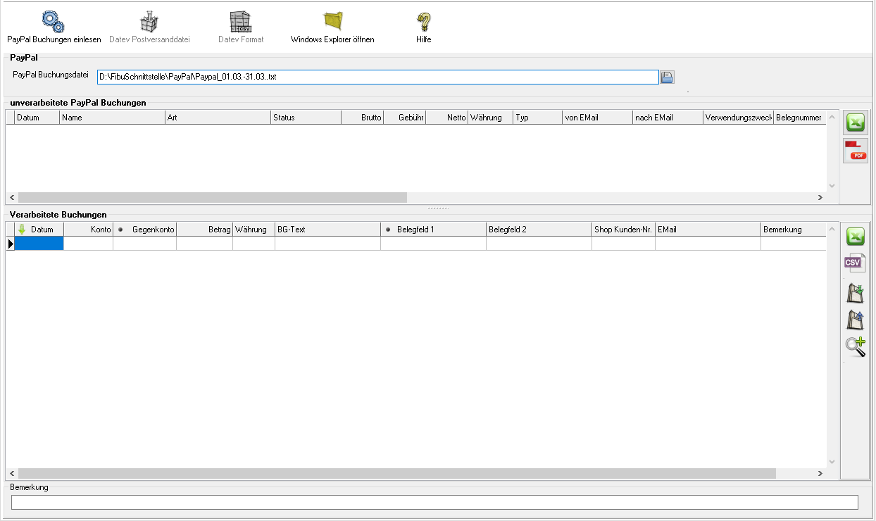 Sie befinden sich hier: Wiki für die Fibu-Schnittstellen der Jera GmbH » xtc » paypal » Import Paypal Kontoauszug : paypalimport1.png